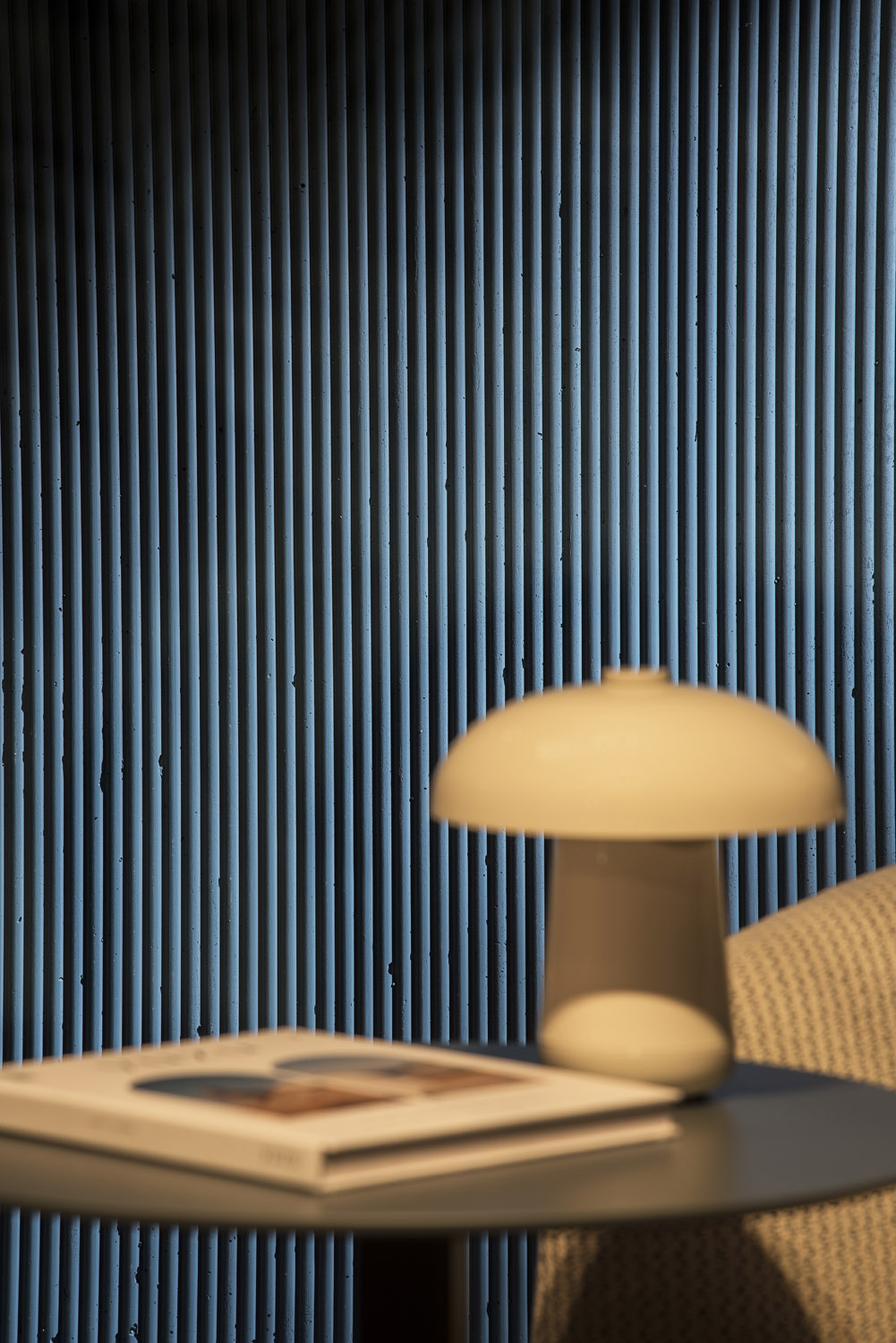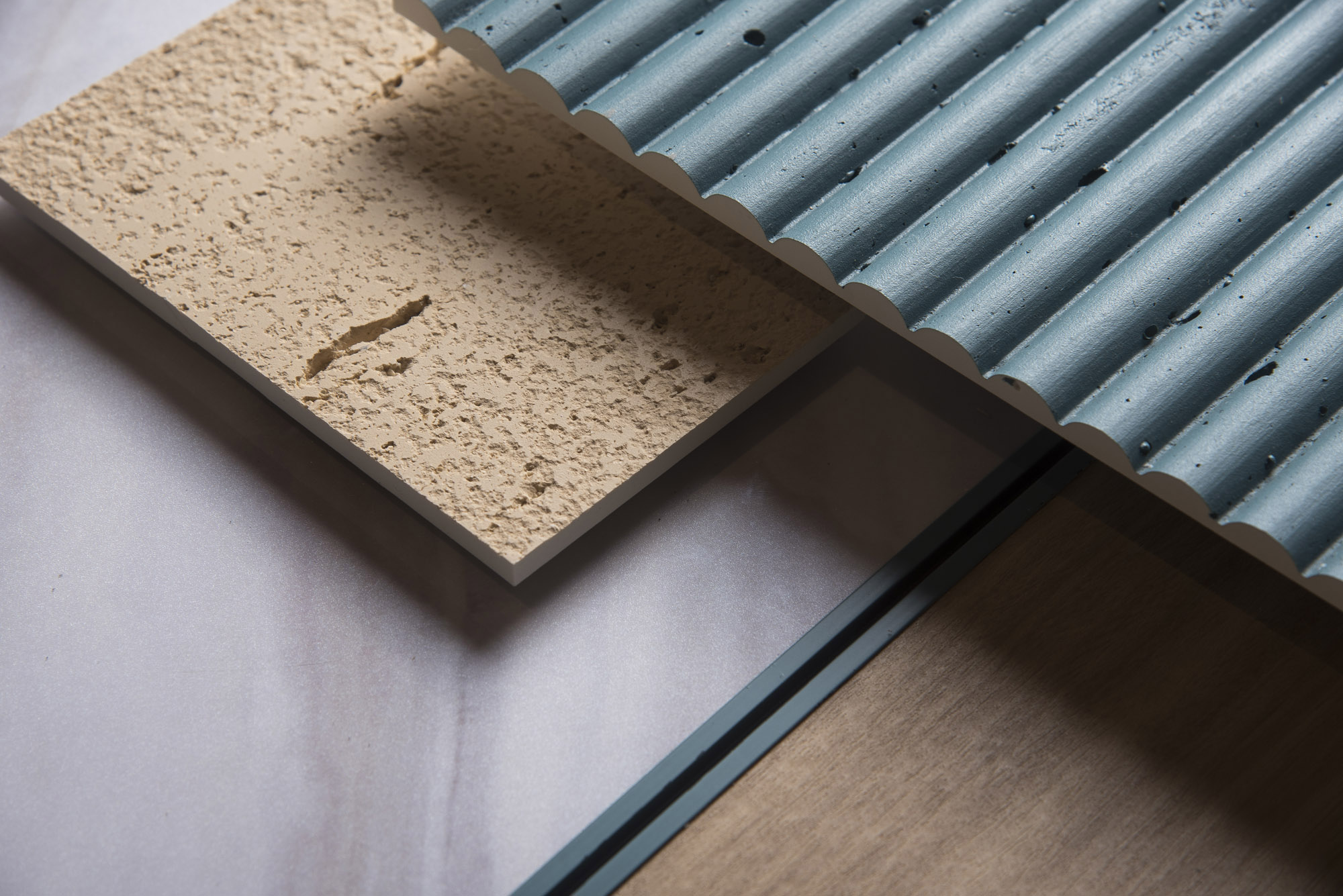Epilogue wall panel is a surface collection that blends the elegance of modern architecture with the tactile character of stone, masterfully bringing together light and shadow on walls. This special series creates a dramatic atmosphere in architectural spaces while highlighting the power of simplicity. The surface form, emphasized by deep grooves, interacts with daylight to add a visual depth that changes throughout different hours of the day. As the color transitions extend from Clay to Teal, walls transform from being merely a backdrop into a living surface that shapes the emotional tone of the space.