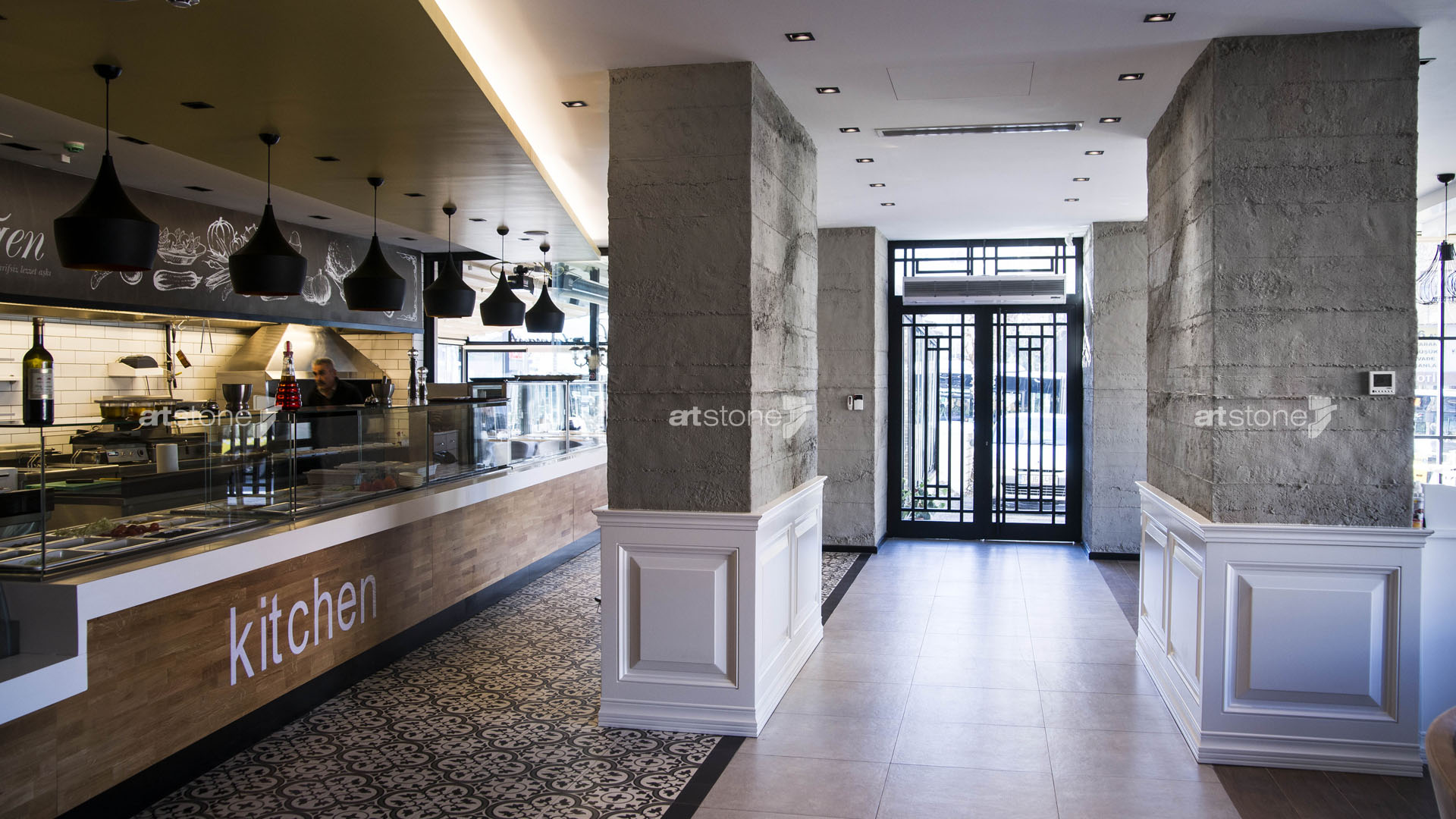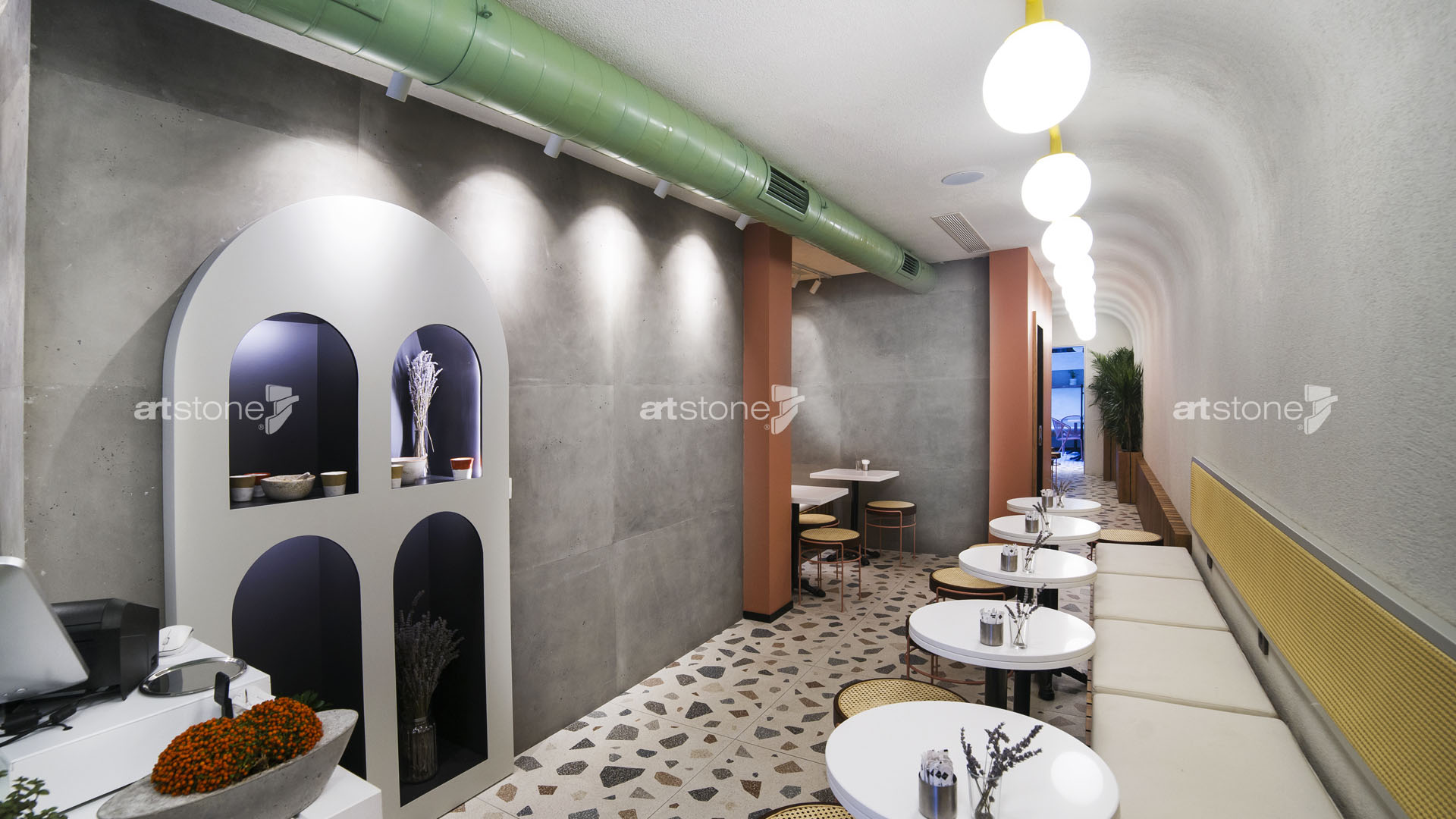 Artstone products, which offer impressive solutions by saving time for businesses thanks to their superior product quality as well as ease of application, are among the first choices in cafe and restaurant projects. Artstone panels are safely preferred in places where hygiene is a significant parameter, such as kitchens and dining areas, thanks to the user and environment-friendly first-class raw materials used in their production.