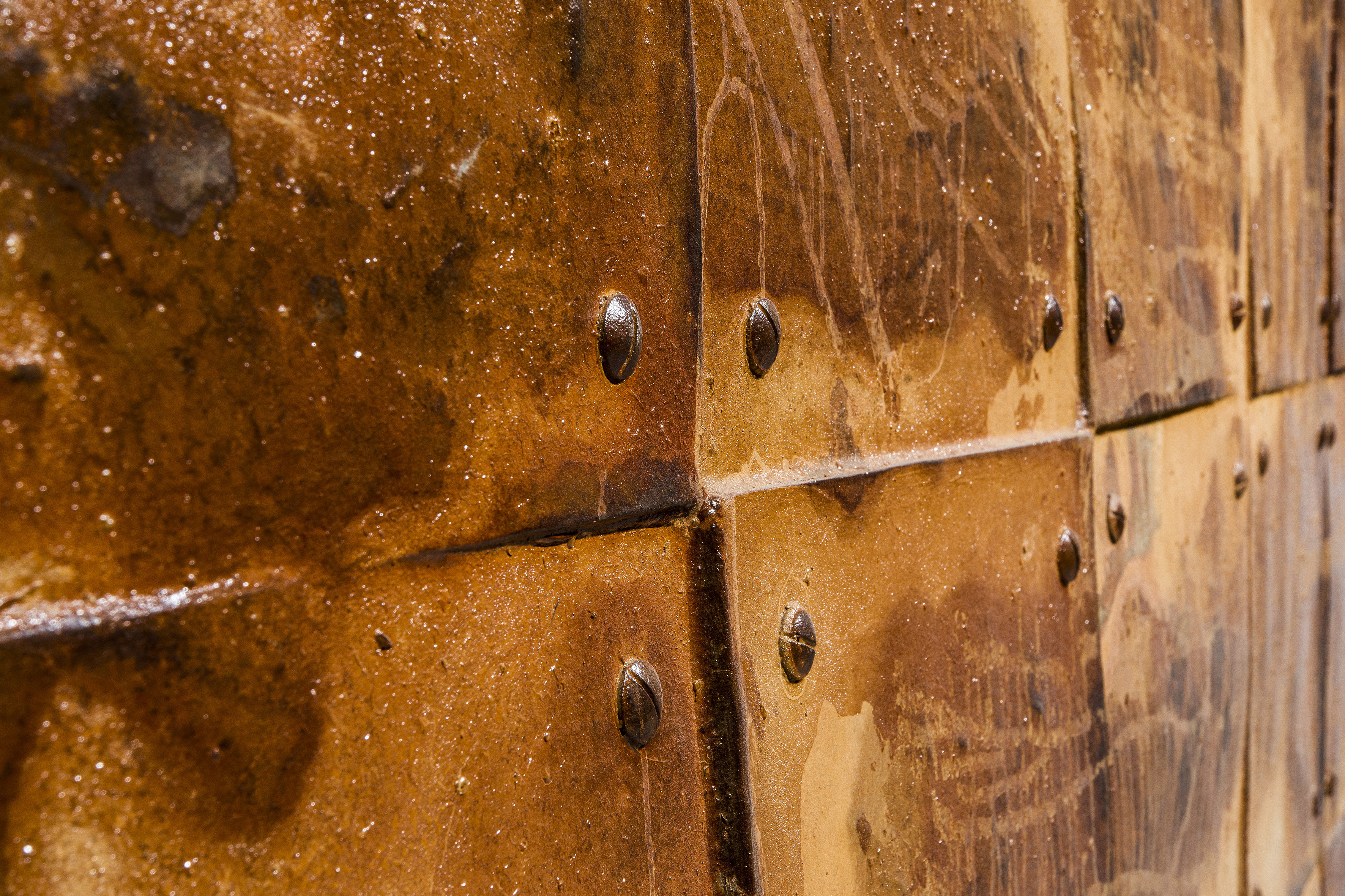 Tornillo Oxyd wall panel is a decorative cladding solution that combines the look of oxidized exposed concrete with geometric forms, rust tones and metallic effects, giving spaces a loft-style, characterful and striking surface texture.