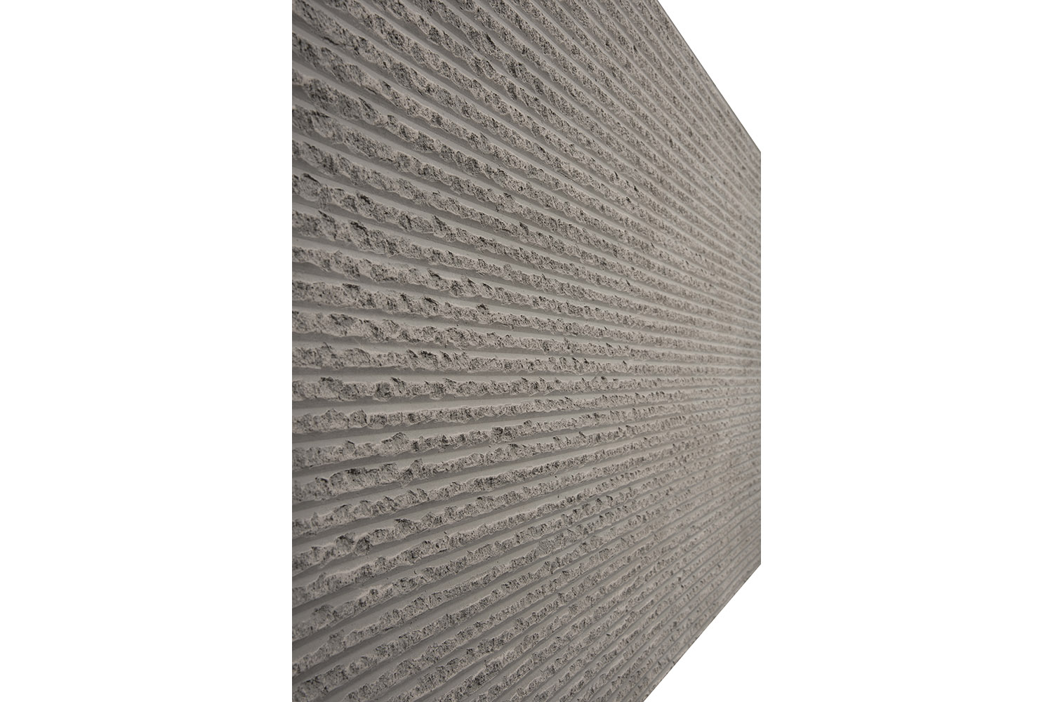 Trophy wall panel is a lightweight and durable mineral-based decorative panel from the Arcqitone® Mineral Based series that brings together natural stone texture and modern lines. Shading details that shift with light give walls dynamic depth and a dramatic architectural atmosphere, while its clean surface form subtly strengthens the character of the space in a sophisticated way. With Zero VOC content, a recyclable mineral composition, and an EPD certificate, it adds value to sustainable projects. Its large-format panel design, which can be safely applied to various surface types, offers a seamless and cohesive appearance on expansive walls. Trophy is an effective surface solution for projects seeking elegance, movement, and a strong architectural expression in modern interiors.