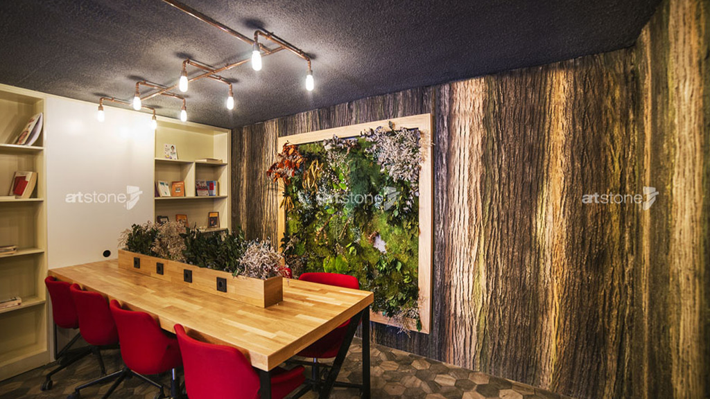 Mekâna tarihin sıcaklığını taşıyan Heritage XVII, özgün etkisiyle dekorasyonun belirleyici unsurlarından biri olan yenilikçi Amazon ile birlikte; kullanıcıların ihtiyaçlarına göre şekillenen konforlu çalışma alanlarına sahip kafenin duvarlarında tercih edildi.