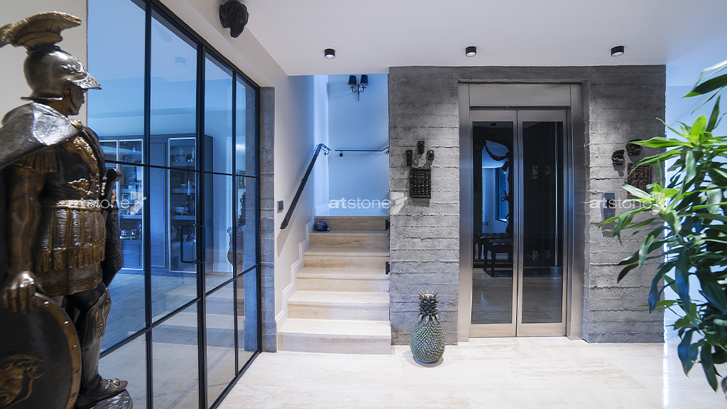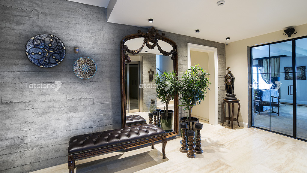 Acarkent özel konut projesinde, mekâna doğayı taşıyan Artstone Innovative Design ürünlerinden Timber ile, kentsel yaşamın brüt beton imajını duvarlara yansıtan Hormigon Loft tercih edildi. Bu iki ürünün bir araya gelmesiyle özgün bir tasarım dili ortaya çıktı.
