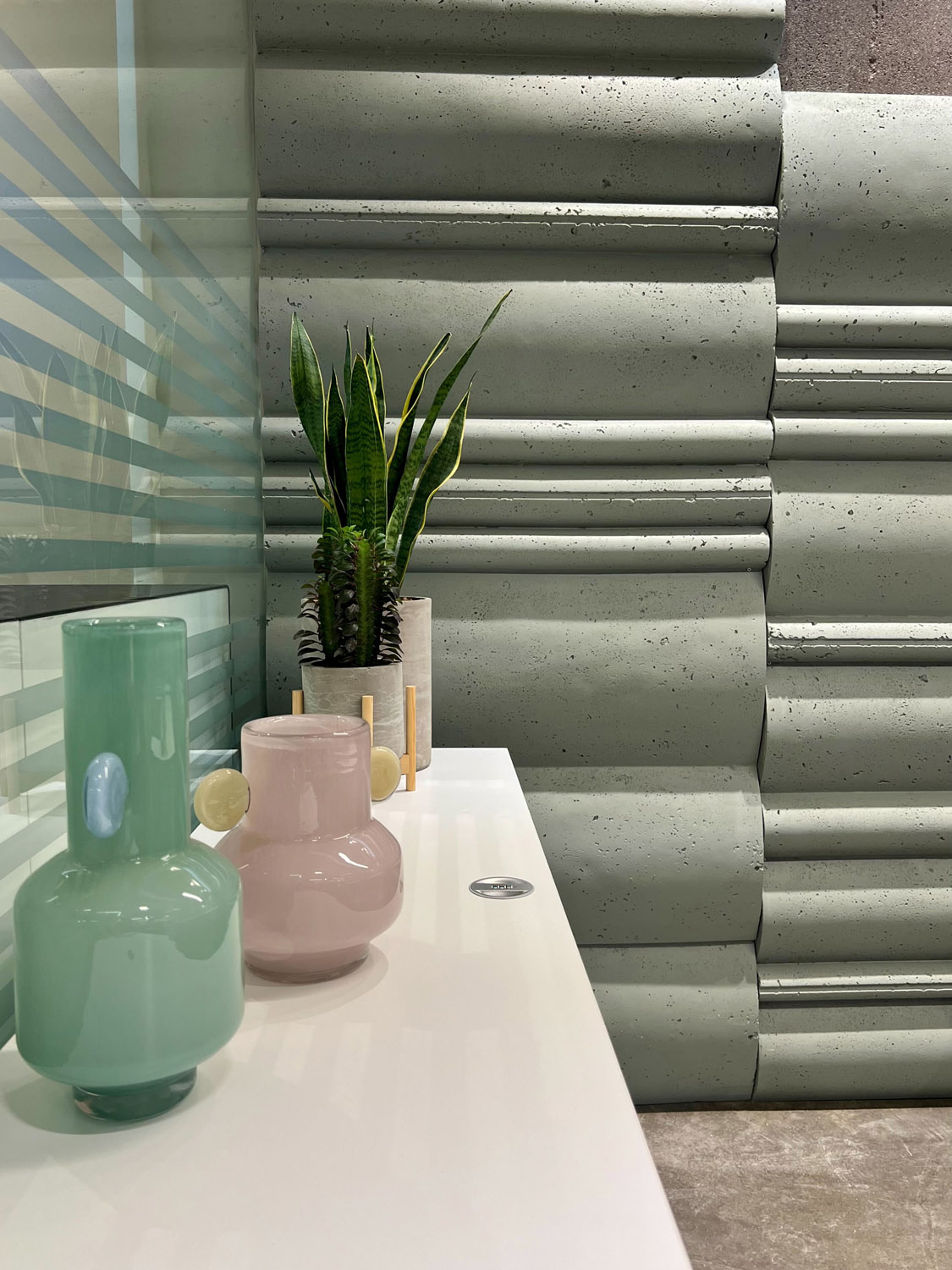 Panelin yumuşak geçişleri görsel bir akış yaratırken, sanatsal yüzey geometrisi sakin ama güçlü bir mimari duruş sunar.