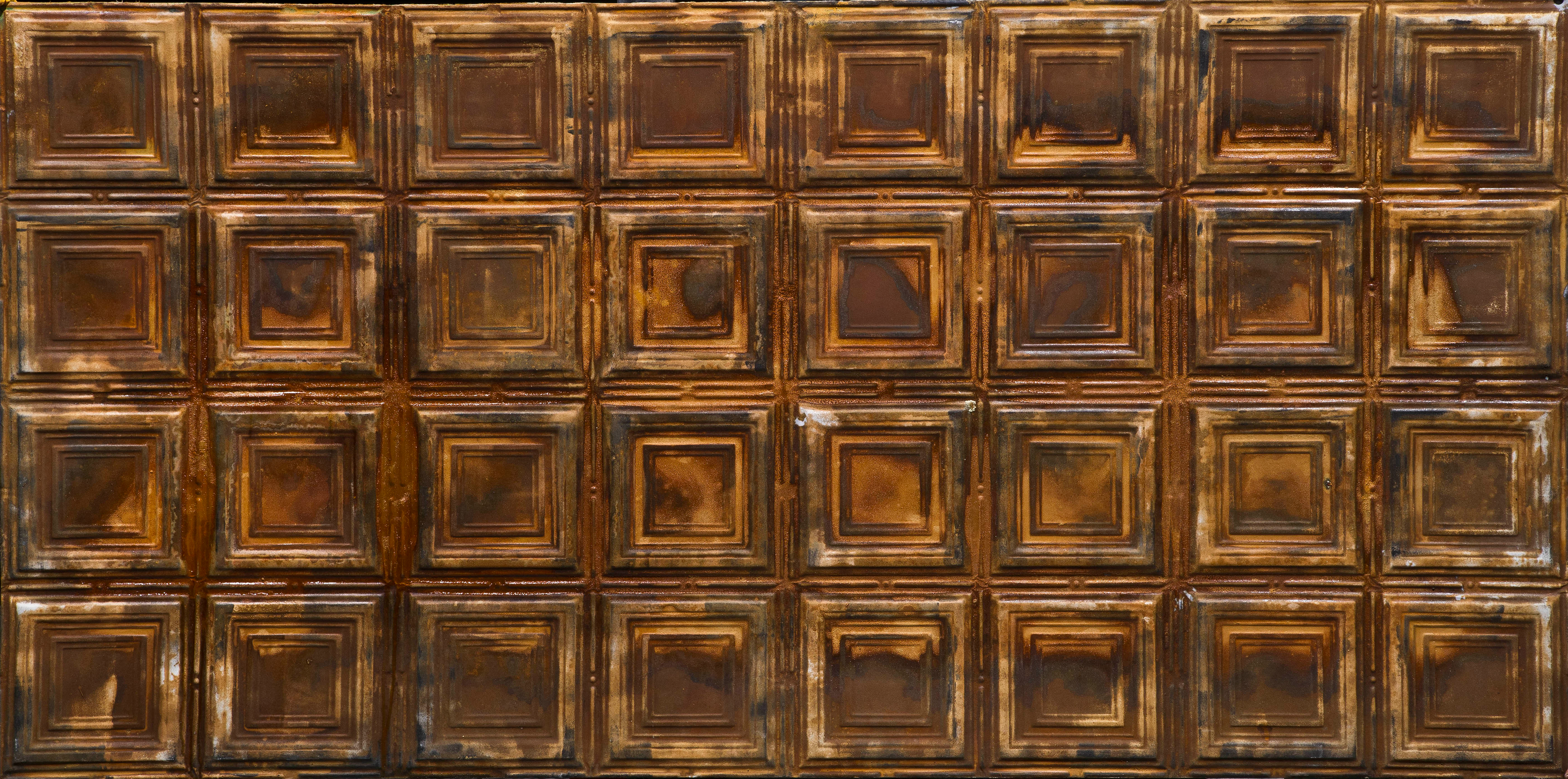 Artstone Grenier Oxyd dekoratif duvar paneli, oksitlenmiş metalin güçlü karakterini rafine bir geometrik kurgu üzerinden yeniden yorumlar. Birbirine geçen kare rölyeflerden oluşan yüzeyi, zamanla aşınmış metalin zenginliğini yansıtan sıcak pas tonları ve patina geçişleriyle derinlikli bir ifade sunar.