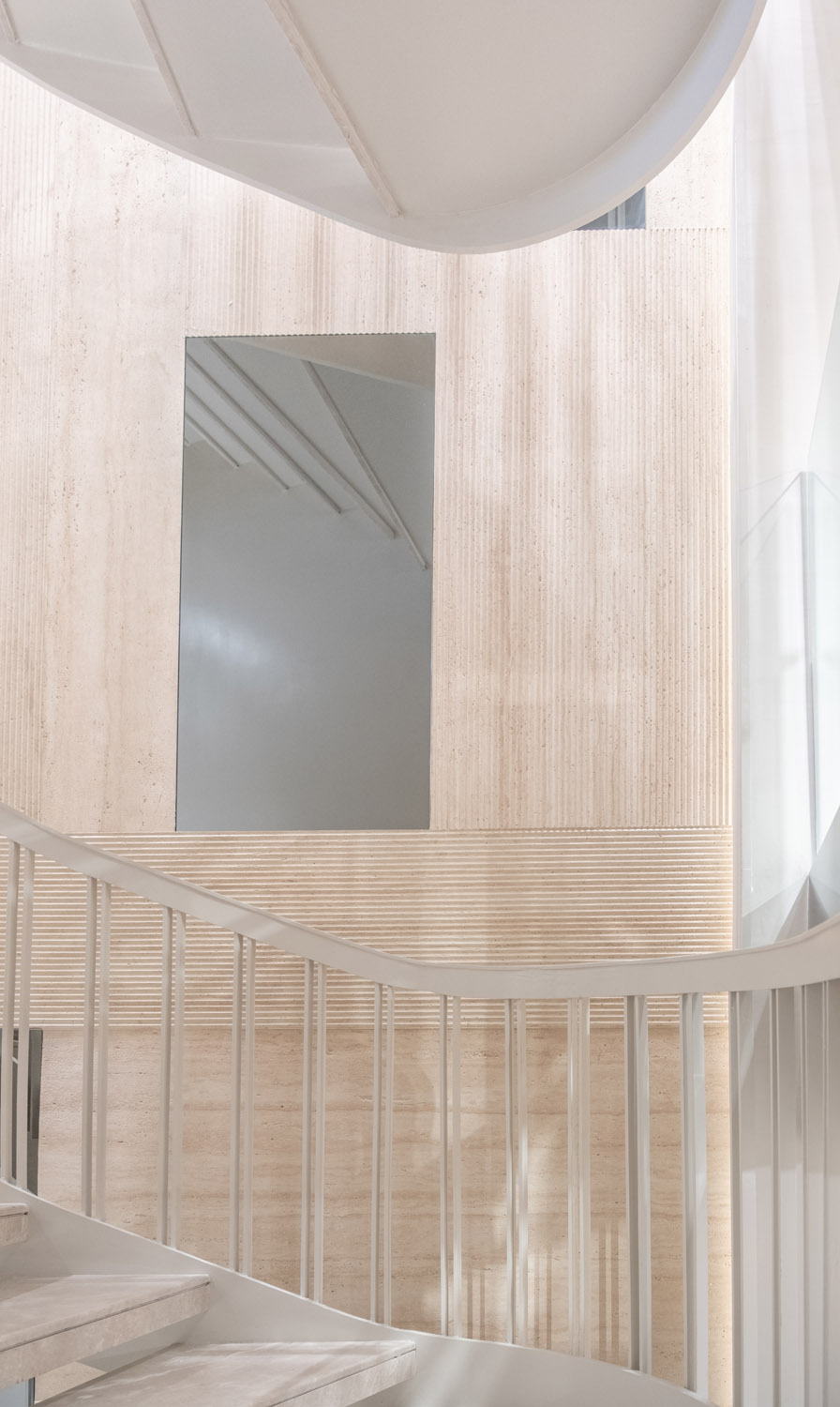 Gyron Travertine’in yüzeyinde travertenin özgün damar yapısı hissedilir; bu doğal doku, keskin çizgilerle birleşerek duvarlarda güçlü bir ritim oluşturur. Gölgelerin yüzey boyunca değişimi, mekâna derinlik ve görsel hareket kazandırır. Bu etki, özellikle 3D duvar panelleri estetiğini destekler; ışıkla birlikte yüzeyde farklı ton geçişleri oluşur, duvarlar yaşayan bir form haline gelir.