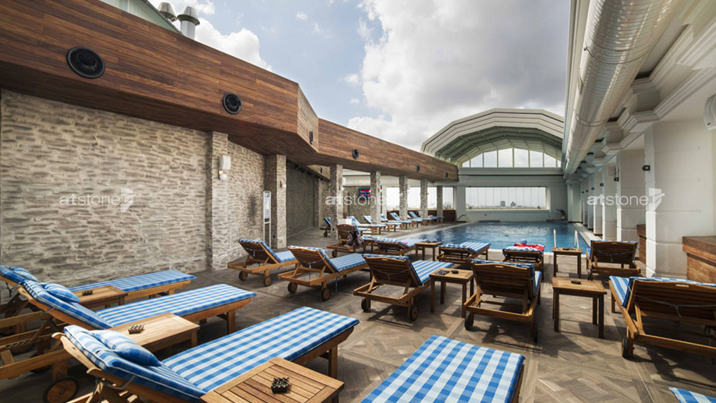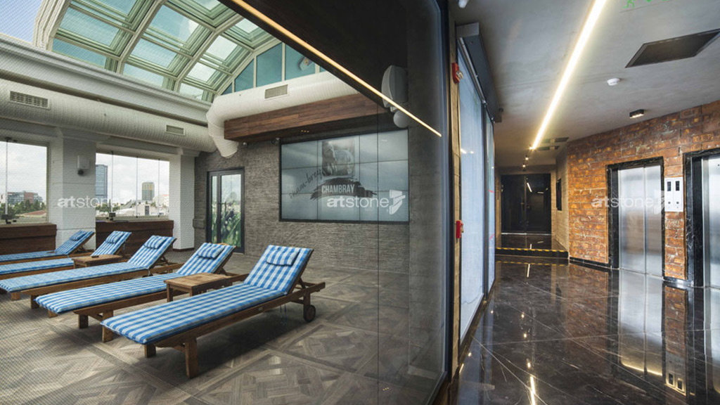 Alse Global tarafından tasarlanan Harbiye Ramada Hotel’in yüzeylerinde toplam 1.100 m² Artstone ürünü kullanıldı. Hormigon Loft, Heritage XVIII, Amazon, Zanzibar, Grenier ve Lajas ürünleri; doğal malzeme görünümleri ve Artstone’un yenilikçi tasarımlarıyla bir araya getirilerek otelin genelinde eklektik bir stil oluşturuldu.
