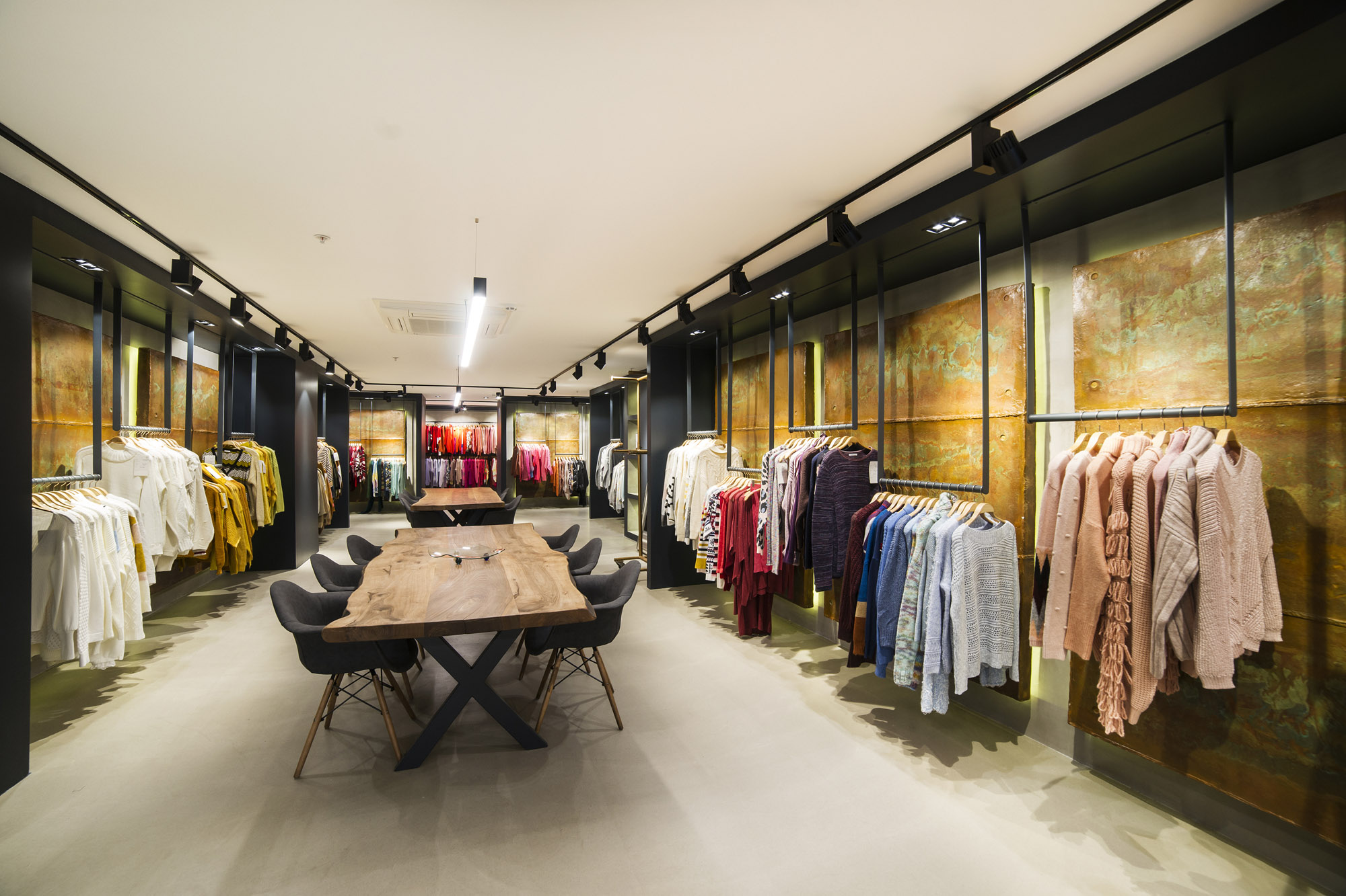 Sıcak pas tonları, betonun soğuk ve ham doğasıyla uyumlu bir kontrast oluşturarak görsel derinlik ve duygusal bir etki sağlar. Bu ikilik, endüstriyel, rustik-modern ve kentsel mimari konseptlere uygun benzersiz bir kimlik oluşturur.