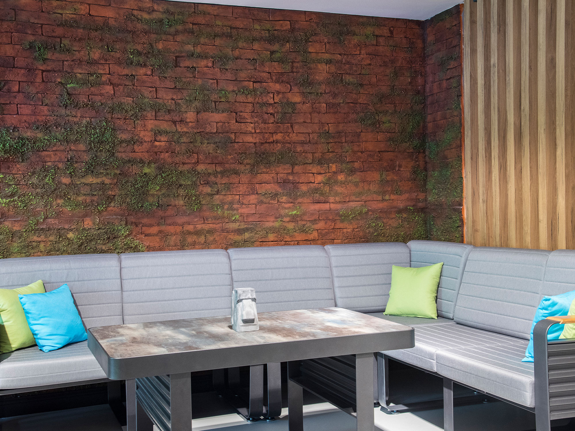 Artstone’un duvar paneli koleksiyonunda Masonry Moss, rustik ama modern bir atmosfer arayan projeler için ideal bir tercihtir. Butik otellerden kafelere, ofislerden teraslara ve özel konutlara kadar geniş bir kullanım alanında, yapılı çevre ile doğal ifade arasında güçlü bir bağ kurar.