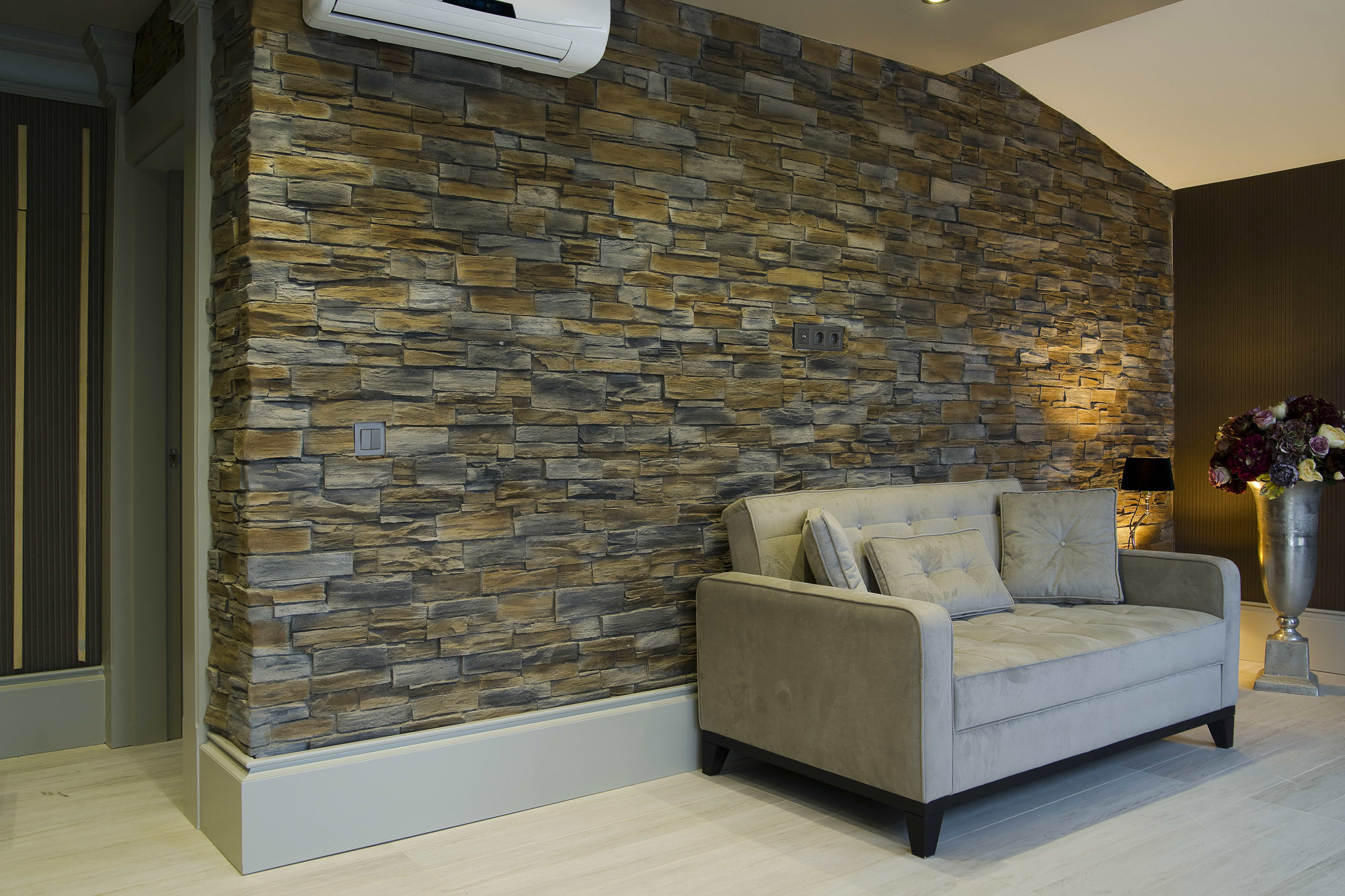 Doku geçişleri ve yumuşak ton farklılıkları mekâna sofistike bir atmosfer kazandırırken,ışığın gün içinde değişen yönleri yüzeyde canlı bir hareket üretir.Bu nedenle Pizarra yalnızca bir kaplama değil, duyusal bir mimari bileşendir.