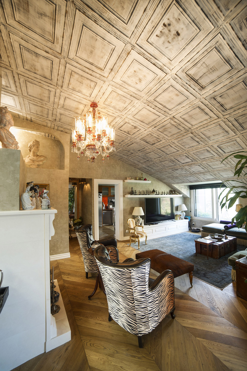 Her detay usta zanaatkârlığı yansıtır; barok süslemelerin sanatsal ifadesi modern bir yorumla yeniden şekillendirilmiştir. Derin rölyef dokusu ve zarif konturları, ışığı farklı açılarda kırarak mekâna canlılık katan bir hareket hissi oluşturur. Bu optik etkileşim, hem görsel hem dokunsal bir derinlik yaratarak duvarları ve tavanları adeta yaşayan yüzeylere dönüştürür.