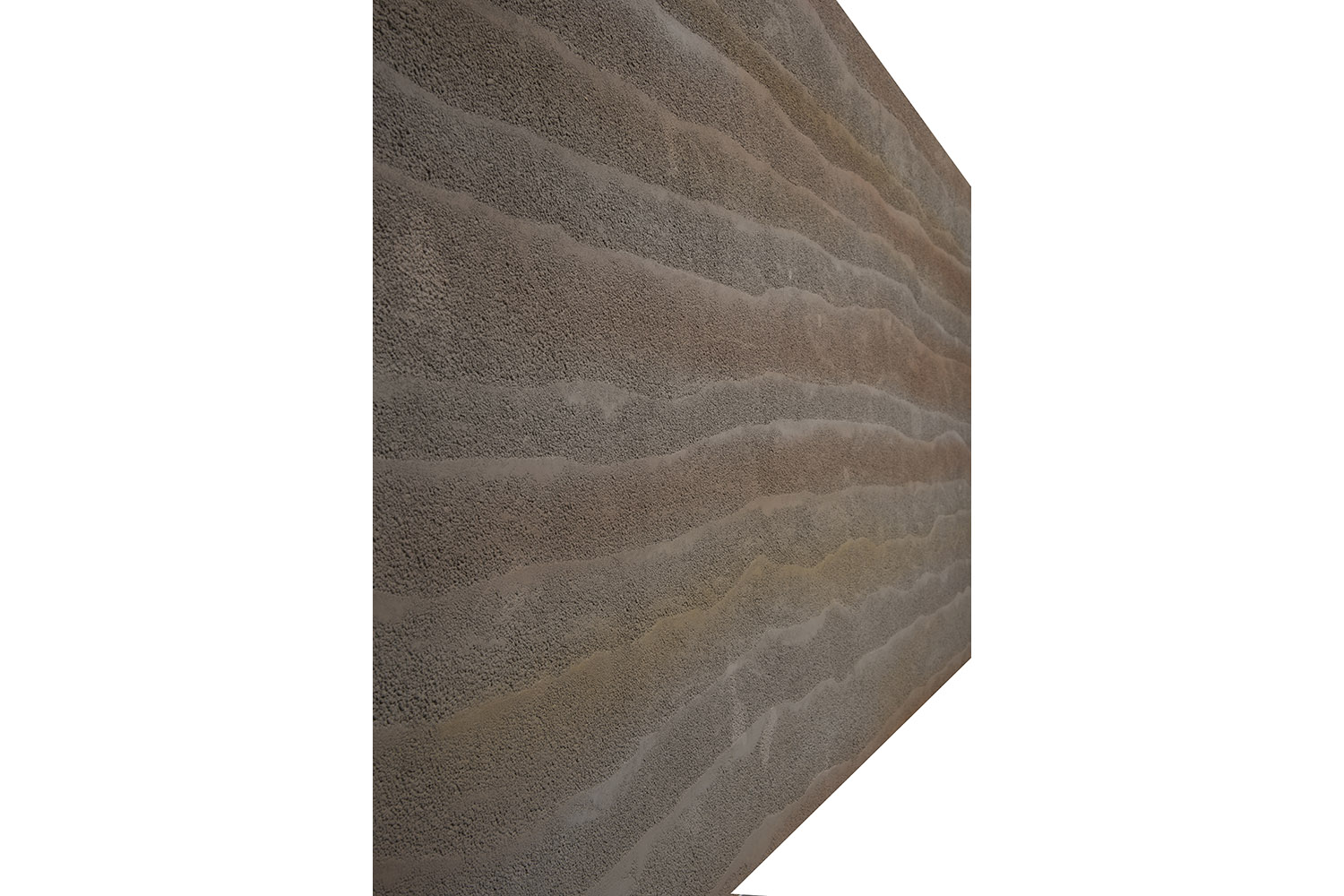Mineral bazlı yüzey dokusu, toprağı ve sıkıştırılmış doğal malzemeleri çağrıştıran bir karakter taşır. Mat ve ışığı emen yapısı sayesinde sert yansımalar oluşturmaz; bunun yerine dengeli ton geçişleri üretir. Bu özellik, iç mekân duvar paneli uygulamalarında daha sakin, daha oturmuş ve zamansız bir atmosfer oluşturmak isteyen projeler için ideal bir çözüm sunar.