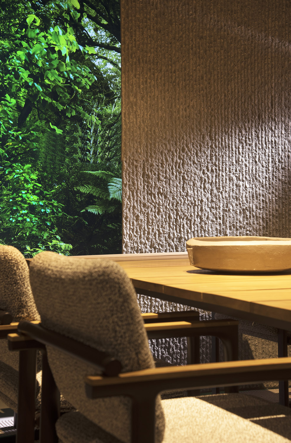 Modern mimaride malzeme dili, mekânın ifadesini belirler; Rokkit, bu dili endüstriyel zarafetle konuşur. Yüzeydeki gölgeli ton geçişleri, ışıkla etkileşerek mekânın her anında farklı bir atmosfer oluşturur. Duvar kaplama panelleri arasında Rokkit, minimal sadelikle heykelsi bir derinliği birleştirir. Bu özellikleriyle çağdaş iç mekânlarda güçlü bir odak noktası yaratır.