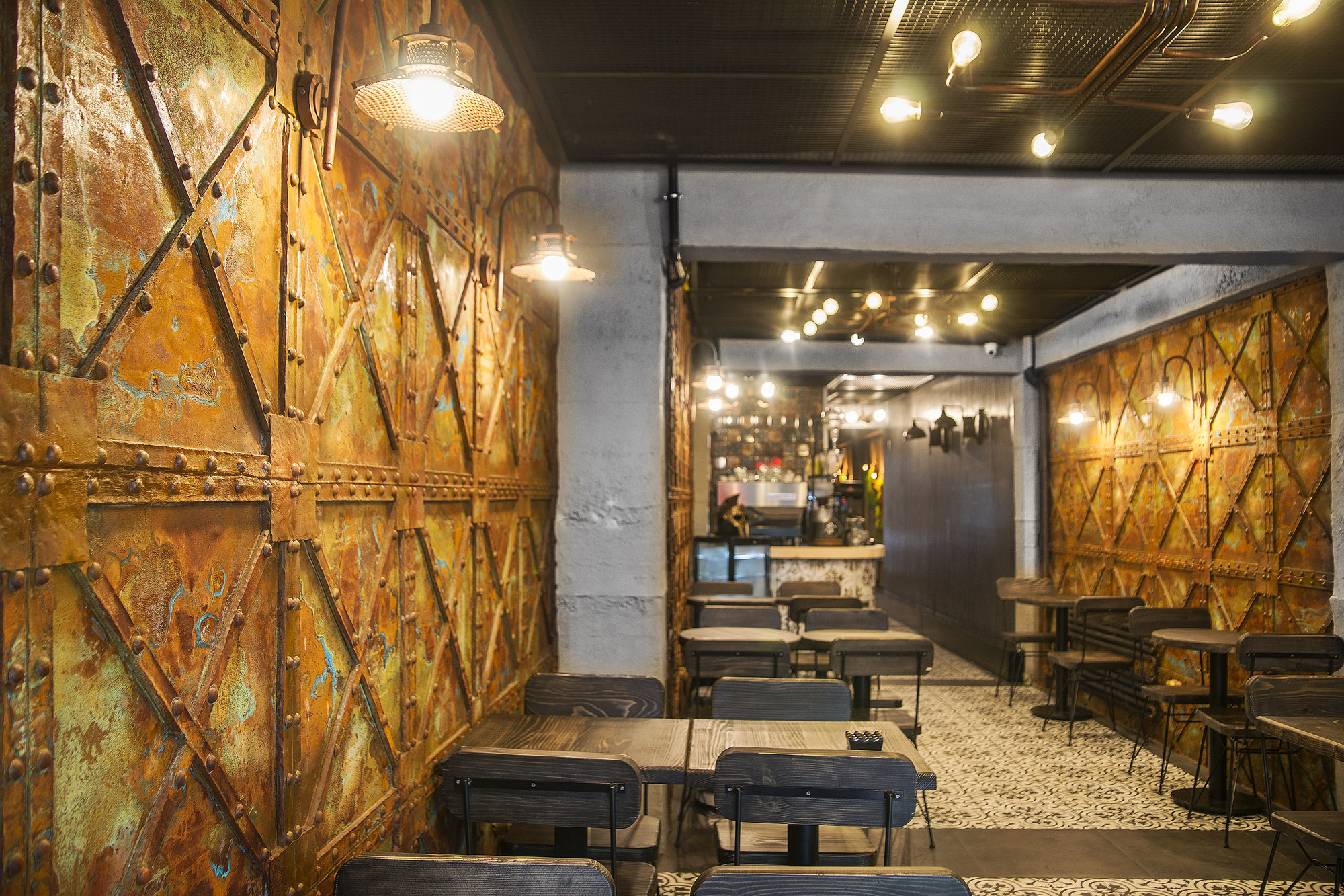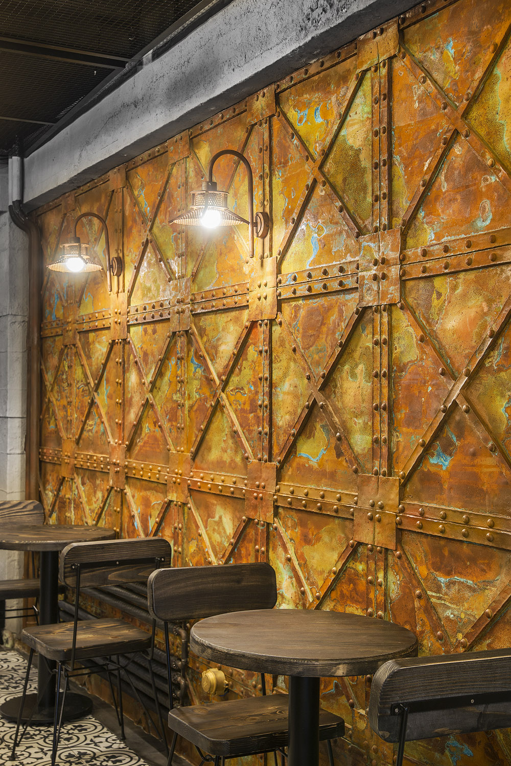 The steel-effect design transforms raw material energy into an aesthetic architectural surface.